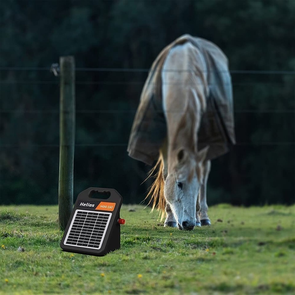 Portable and Tough Solar Electric Fence Charger: Mini160 solar powered electric fence is a portable, super tough unit that?s quick and easy to install, and comes with built-in solar panels and an internal super quality GEL acid battery, Simply mount the solar electric fence energizer on a suitable steel rod and connect to your fence.