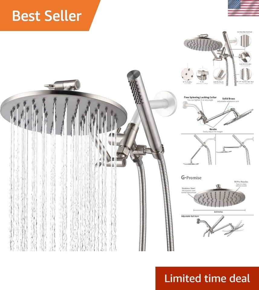 All Metal Dual Shower Head Combo | 8" Rainfall Shower Head, Handheld Shower W...