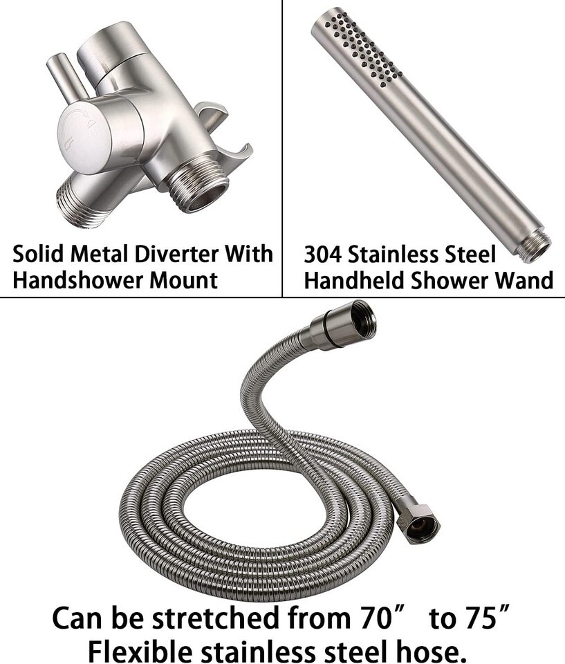 ?ALL METAL SHOWER HEAD AND HAND SHOWER WAND: Shower head and hand shower wand are made from solid metal. All METAL construction is more durable than plastic, and provides a longer service life
