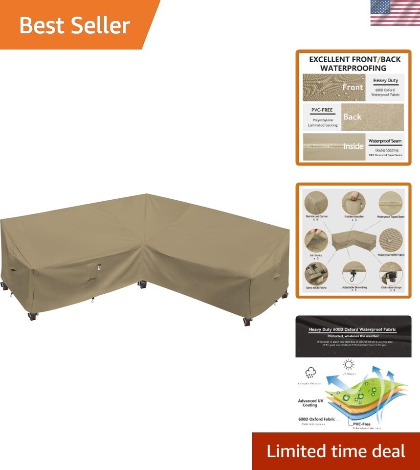 Heavy Duty Outdoor Sectional Sofa Cover, Waterproof 600D Patio Sectional Couc...