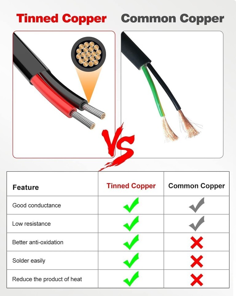 HIGHLY CONDUCTIVE: electrical wire uses high-precision oxygen-free tinned copper, The outside diameter of the Jacket is mm Typ, and 26 strands of mm tinned copper wire are inside each circuit, has lower resistance and higher conductivity