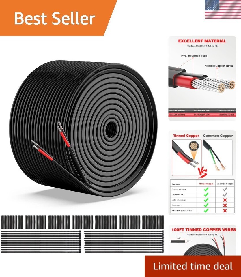 BUILT TO LAST: 2 Conductor 16 gauge wire is insulated with high-quality PVC, excellent chemical and oxidation resistance, 28 packs of heat-shrinkable tubes 10 packs of cable ties. These tubes can Protect wires from damage caused by abrasion and moisture