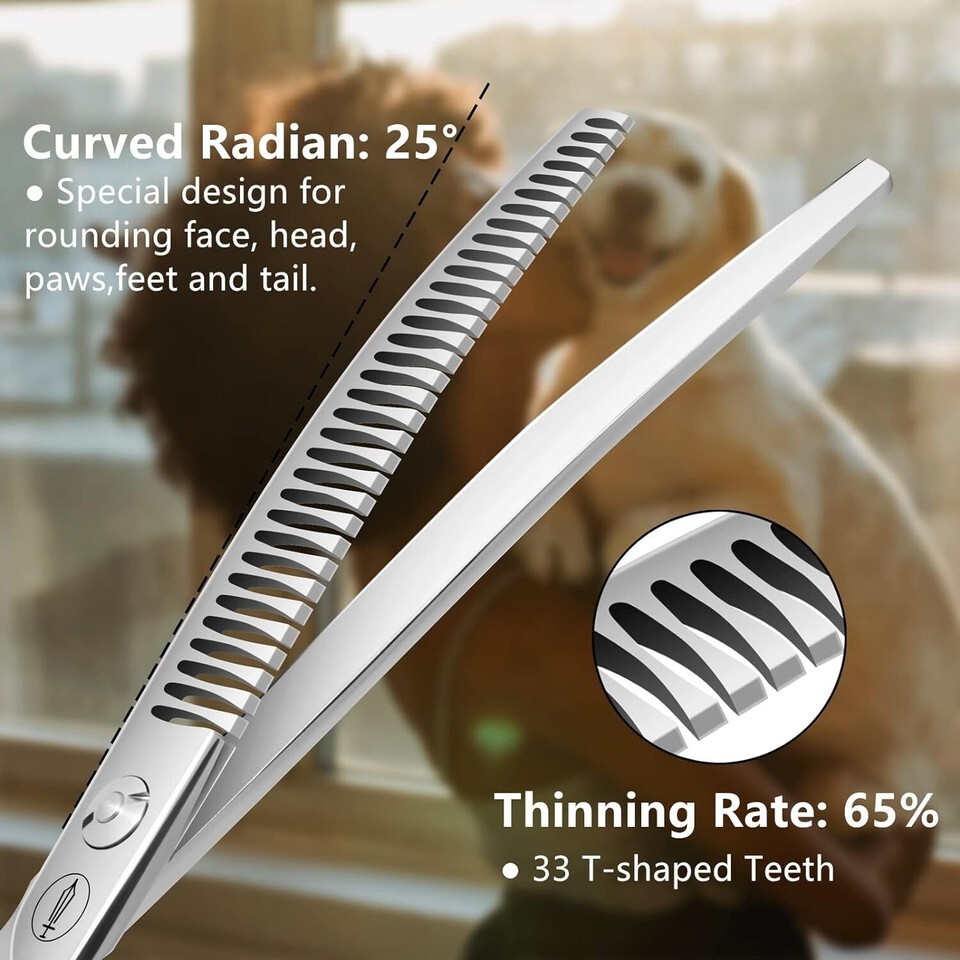 Curved Chunkers Shears Dog Grooming,Cat Curved Scissors,33 teeth, Inch,65% Thinning Rate,Light Weight. Special Designed for Pet Groomers or Family DIY Use.