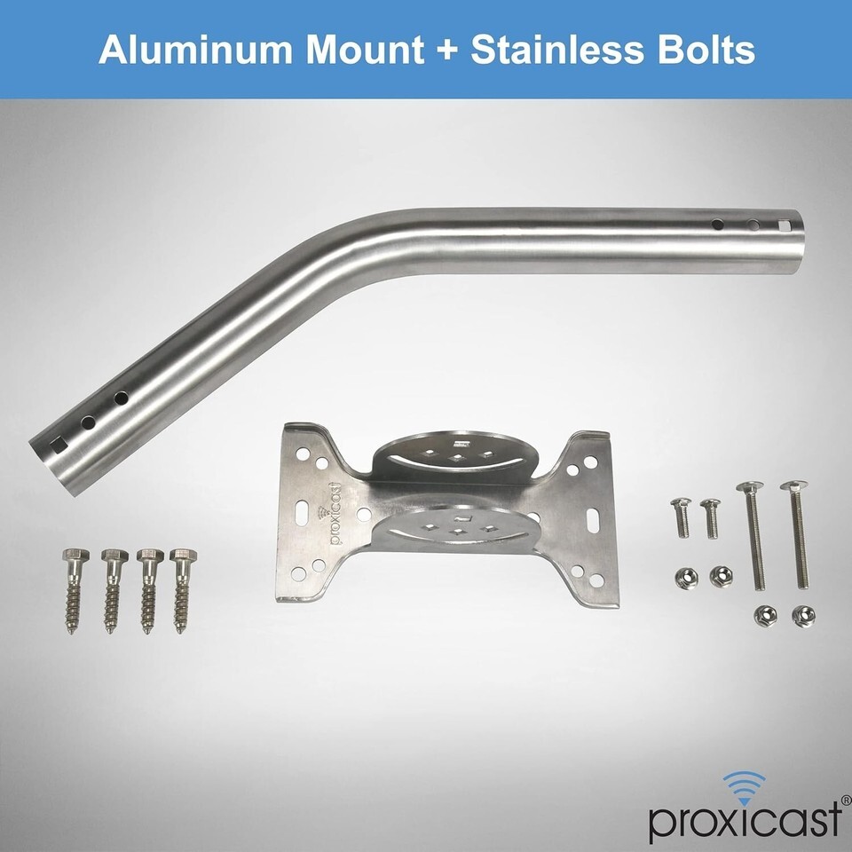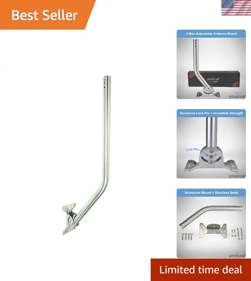 Pro-Grade J-Max-XL Aluminum Adjustable Antenna Mounting Bracket Kit for Wall, Eave, Gable, Chimney or Roof Mounting ?s Pro-Grade J-Max-XL is a light-weight solid aluminum adjustable stand-off antenna mast for convenient and flexible mounting of any sort of antenna, lighting, camera or other equipment to walls, gables, eaves, chimneys, roofs, decks or other flat or sloped surfaces. This is the mount you want to support your heavy expensive equipment like satellite dish, 4G/5G or HDTV antennas, weather stations, surveillance cameras or exterior lighting.