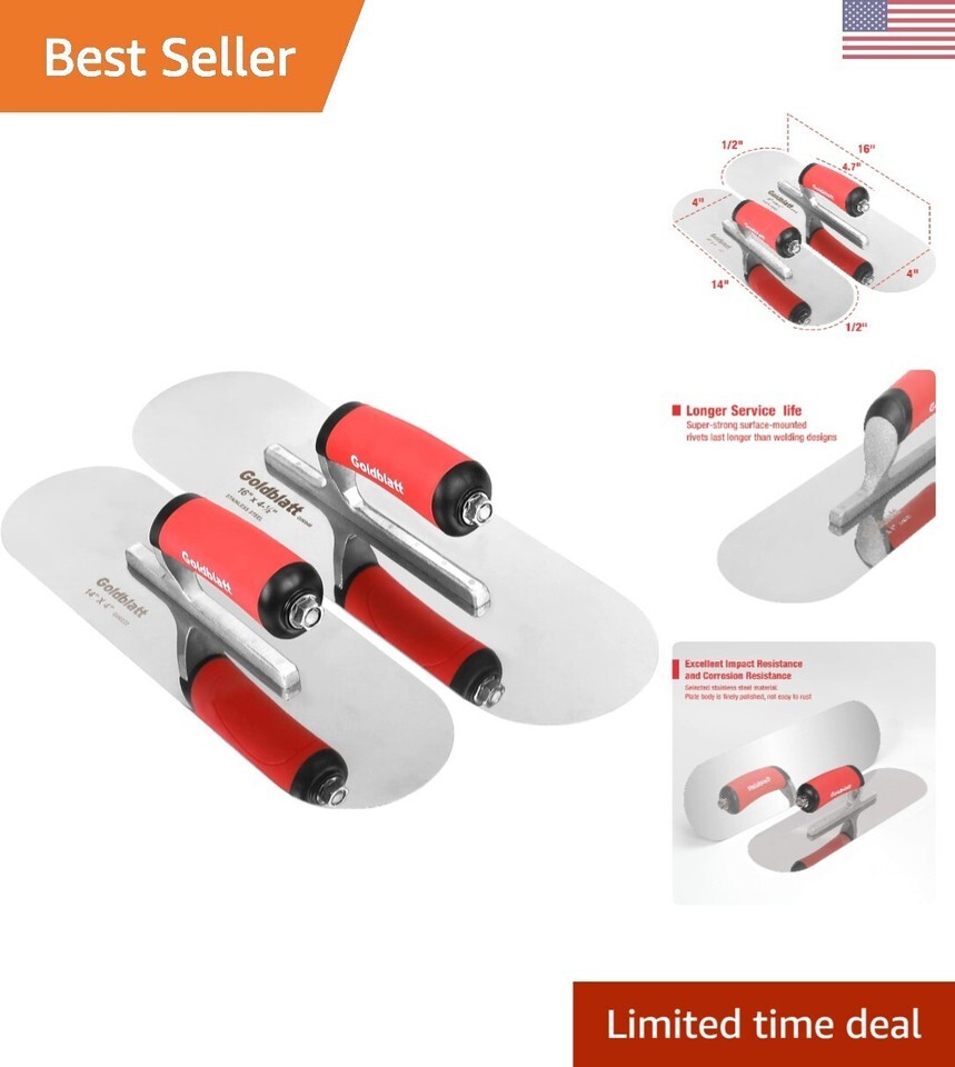 2 Pieces Pool Trowel Stainless Steel with Soft Grip Handle, Includes 16'' x 4-1/2'' 14'' x 4'' Finishing Trowels Set, Lightweight Alloy Mounting, Round End