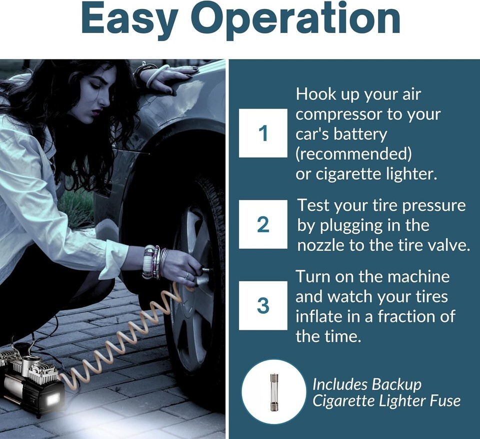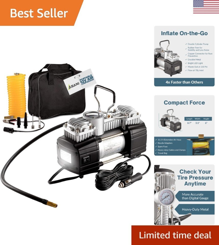 Durable Metal 12V Tire Pump with Rust-Resistant Connector - Easy Travel Solution