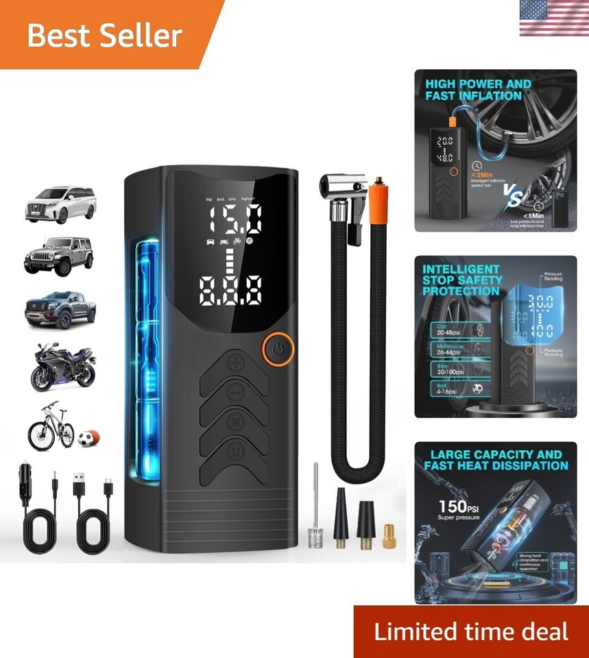 Tire Inflator Portable Air Compressor,150PSI Portable Tire Inflator for Car, Air Pump with Digital Pressure Gauge,20000mAh 4X Fast Cordless Electric Inflator Pump,for Car, Motorcycle,Bicycle,Tire More