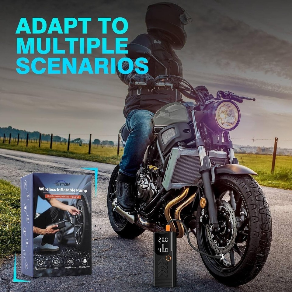 Multi-purpose air compressor: This multi-purpose portable tire inflator is not only suitable for inflating car tires, but also for inflating motorcycles, bicycles, sports balls, inflatable mattresses and lifebuoys. If you have any questions about the portable tire inflator, please contact me and our customer team will be here to help you