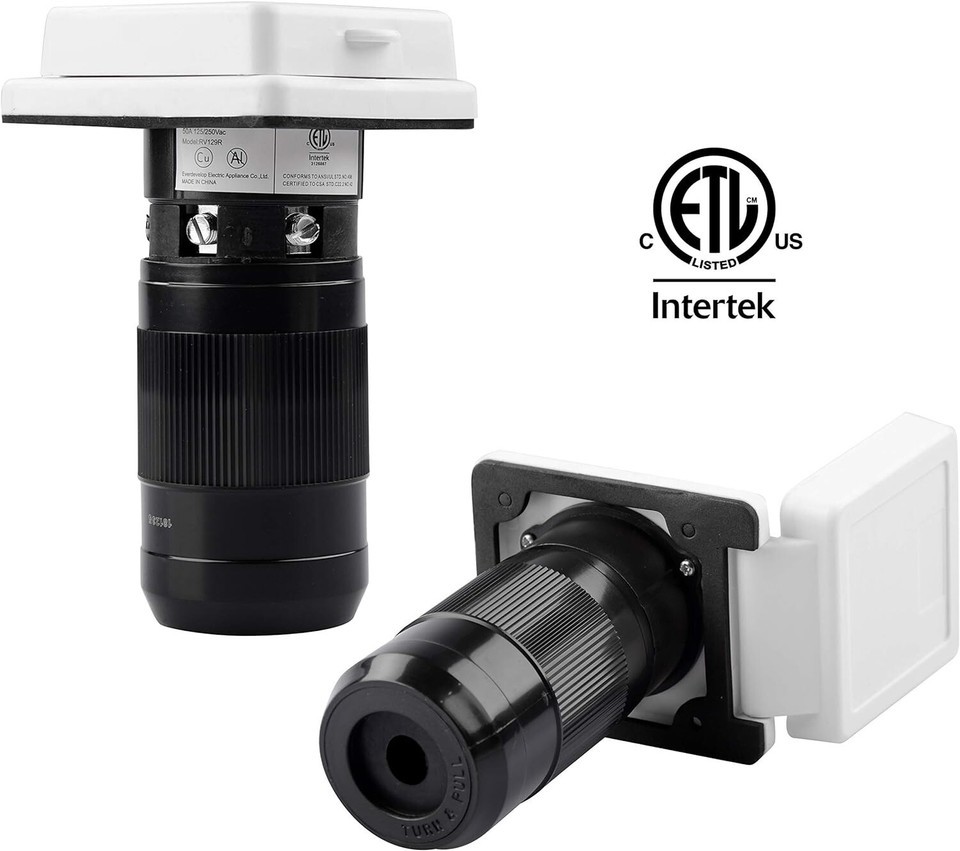 ETL Approved: 50 Amp 125/250 Volt power inlet, NEMA SS2-50P, safe to use.