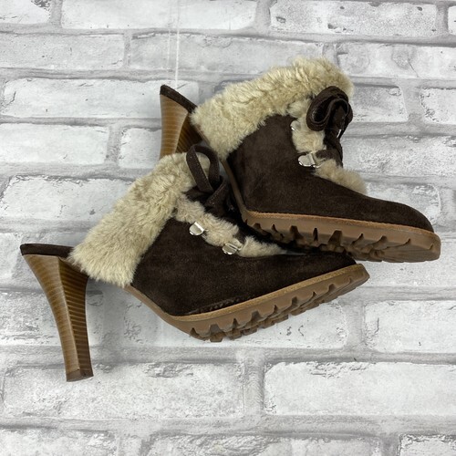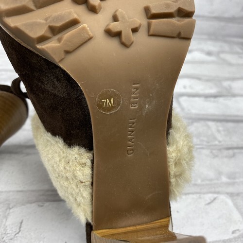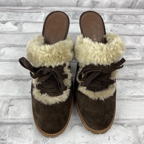 Gianni Bini Stowe 204 Leather Heeled Mule Clogs Brown Size 7M Fudge Brown