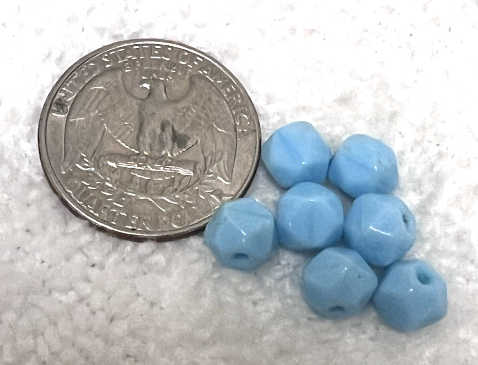 7 Vintage French Blue Glass Beads 1/4 in Faceted Round