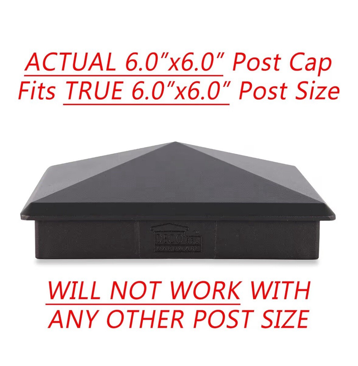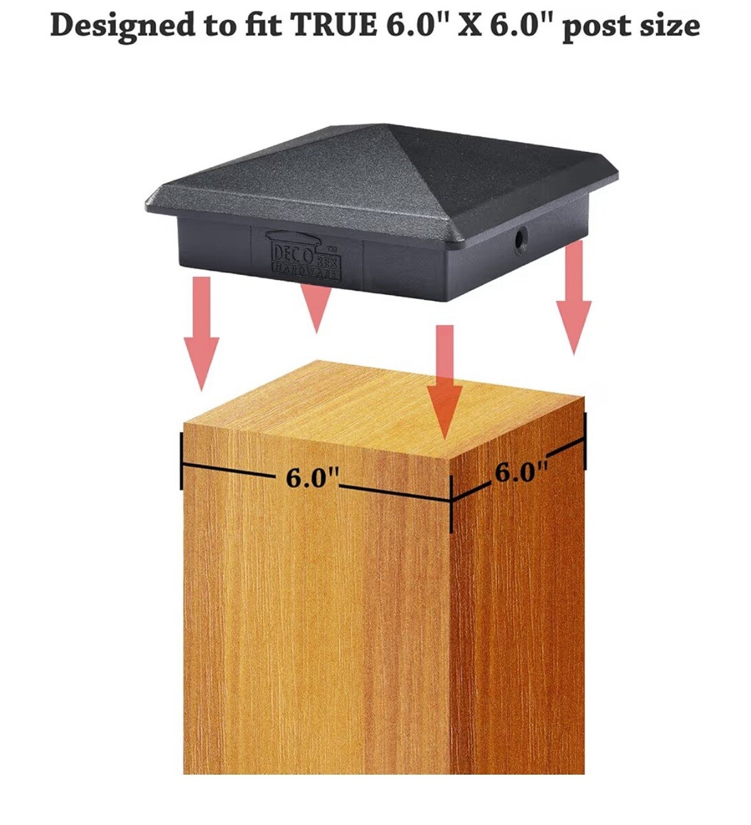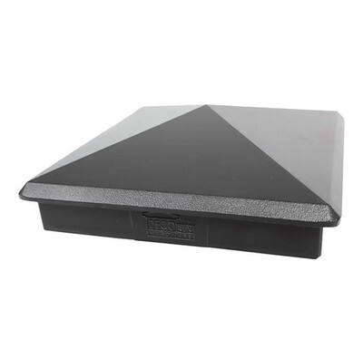 Great price on a lot of 9, aluminum, black, pyramid, fence post caps for actual, true sized, 6 inch x 6 inch post.