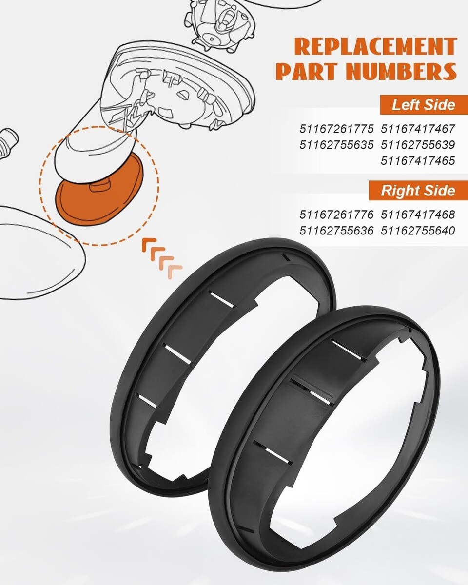 left side mount mirror gasket replace51167261775, 51167417467, 51162755635, 51162755639, 51167417465 right side view mirror housing rubber gasket replace 51167261776, 51167417468, 51162755636, 51162755640