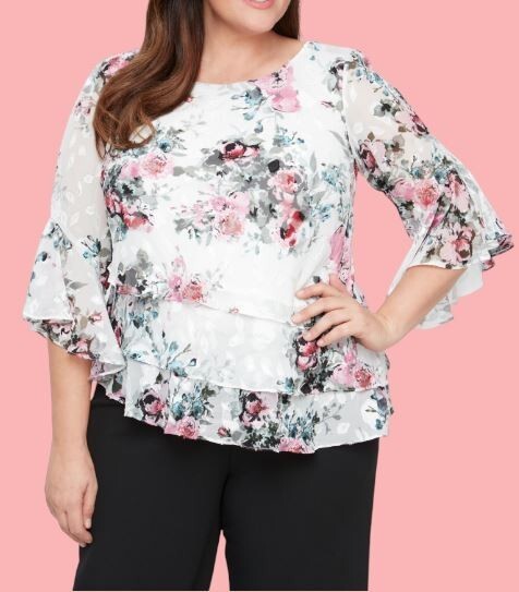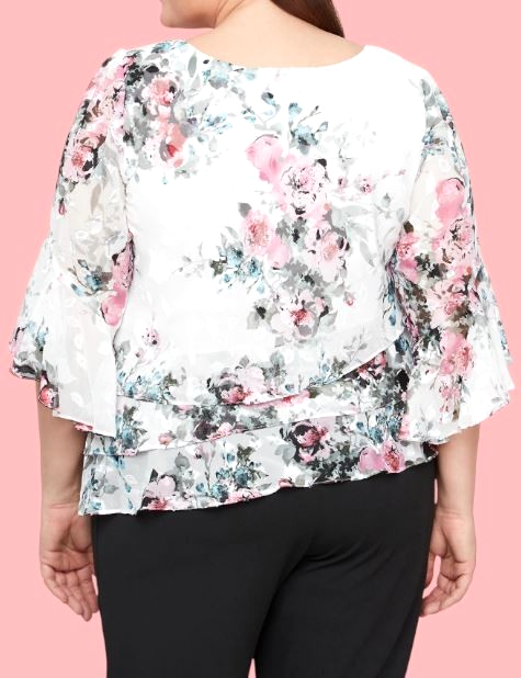Alex Evenings Plus Size 3/4 Sleeve Printed Blouse Size 1X Color: IVORY/PINK $149