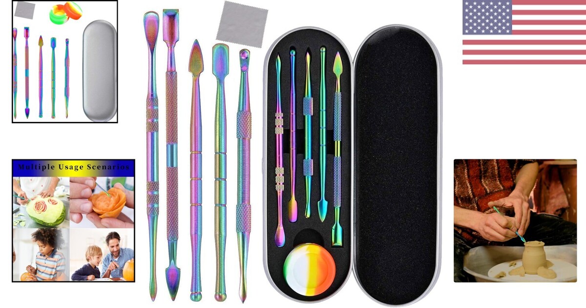 Compact 7-Piece Wax Carving Tool Kit in Rainbow Colors with Silicone Container