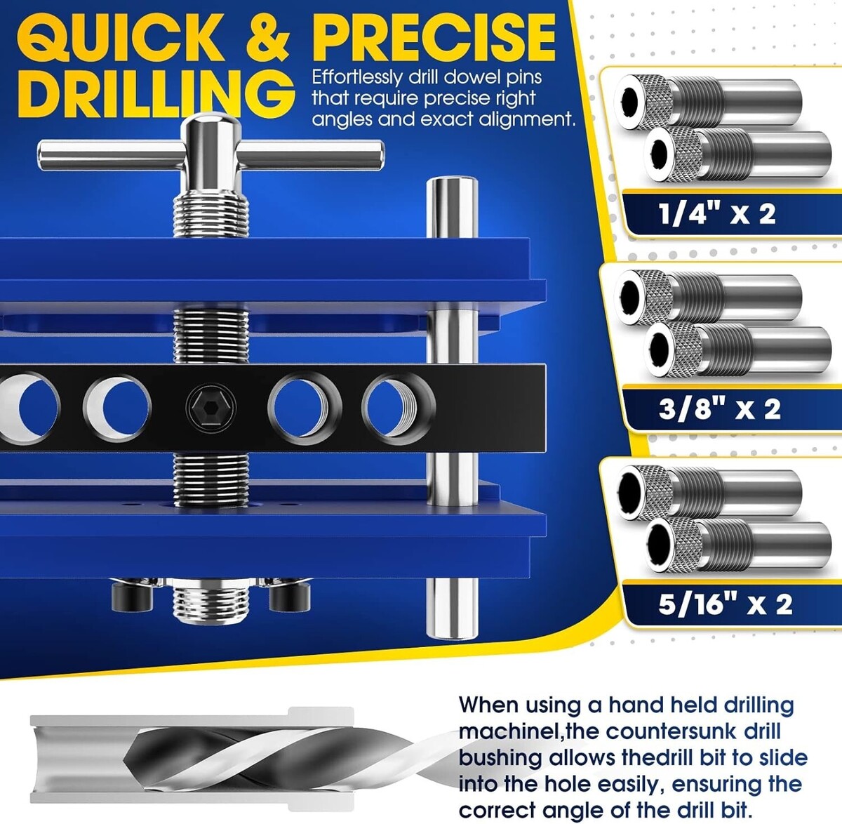 ?Ease Of Use?Supports up to ", suitable for most boards and round woods when combined with a power drill, the drill sleeve is made from high quality materials for strength and accurate positioning.