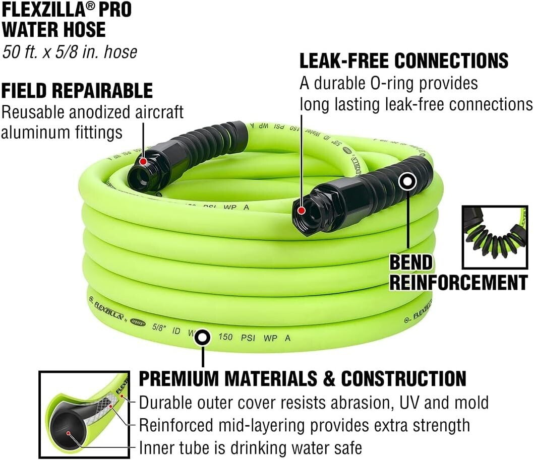 Pro Heavy-Duty Water Hose 5/8in x 50ft - Flexible Drinking Water Safe Hose