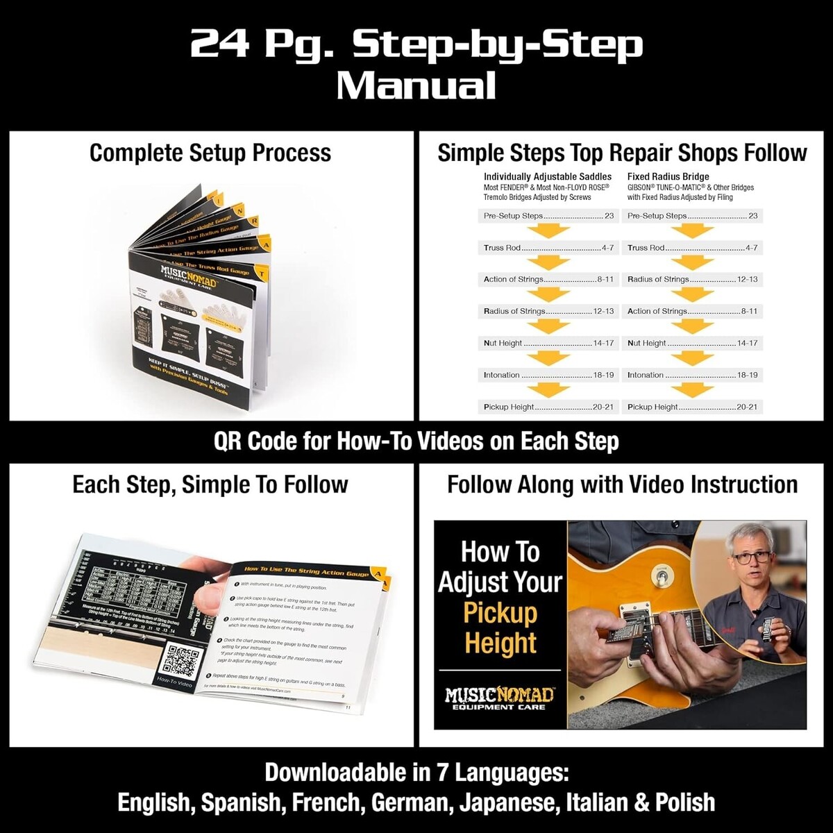 Precision 6 pc. Guitar Setup Gauge Tool Set - Plus 24 pg. Instructional Bookl...