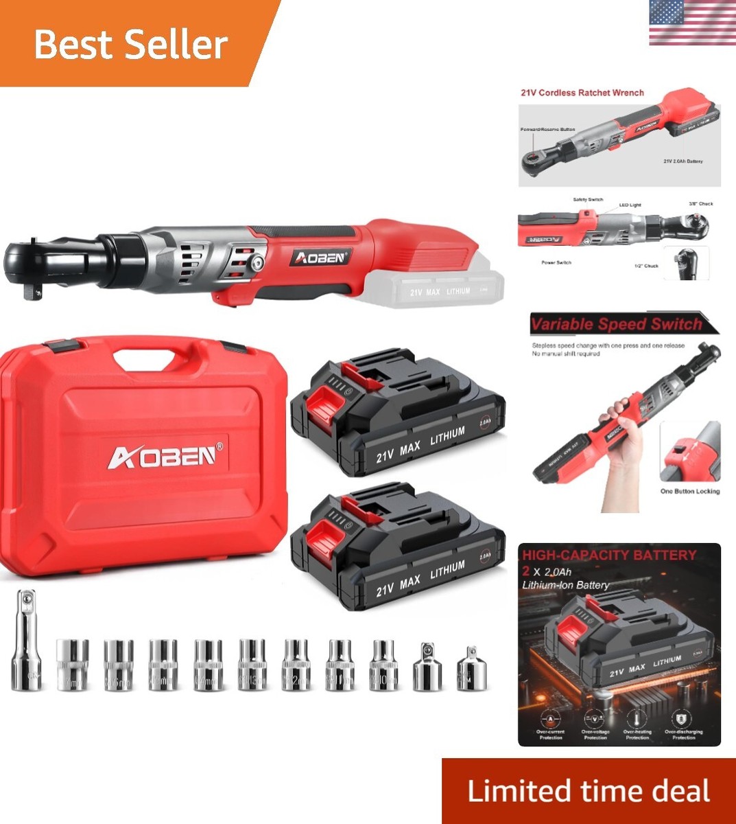 Powerful 21V Electric Wrench - 74 Ft-lbs Torque, 2 Batts, Extension Bar & More!