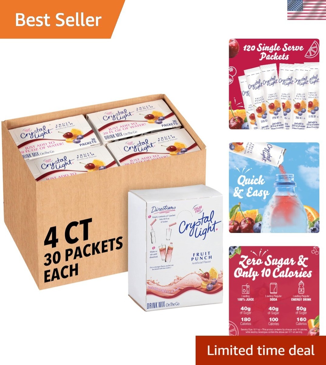 DRINK MIX PACKETS: 4 boxes of 30 Single Serve Sugar-Free Fruit Punch Artificially Flavored Powdered Drink Mix On-the-Go Packets