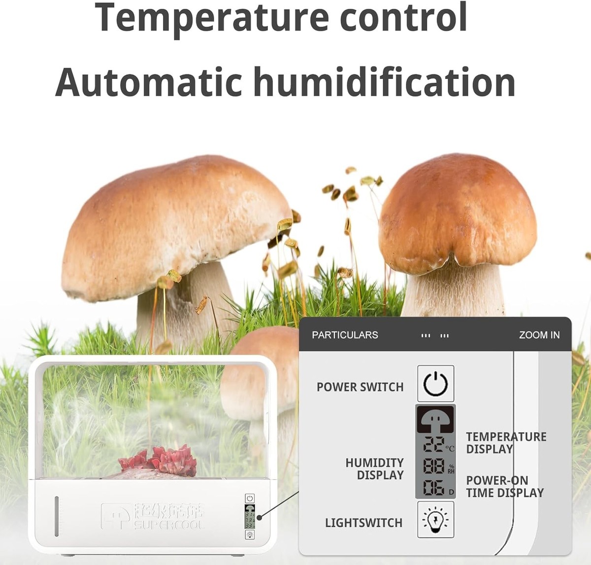Mushroom Grow Tent with Automatically Adjusts Humidity,Indoor Mushroom Grow Box with Grow Light,Smart Monotub Mushroom Growing Kit with Temperature Display,Still Air Box for Mushroom Growers