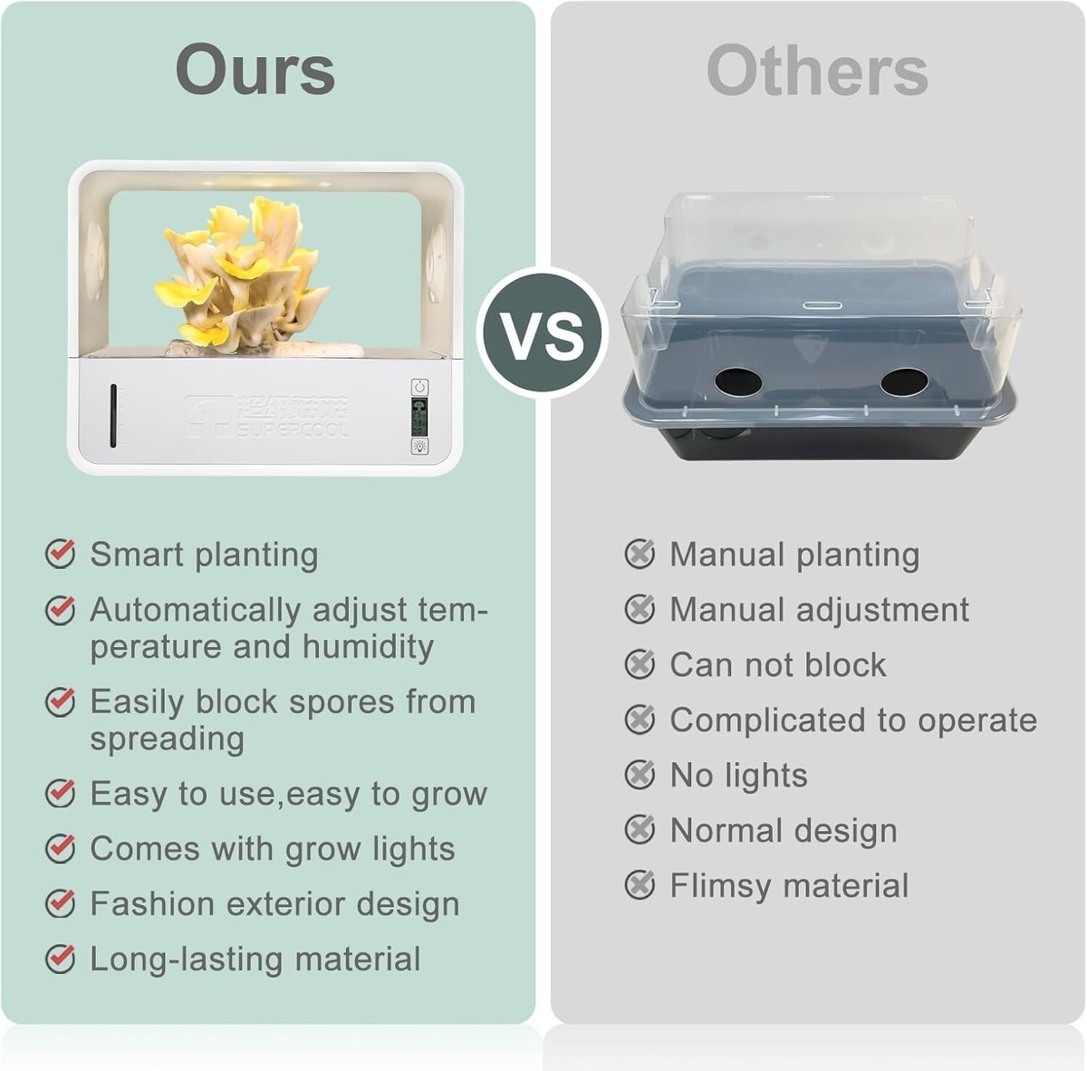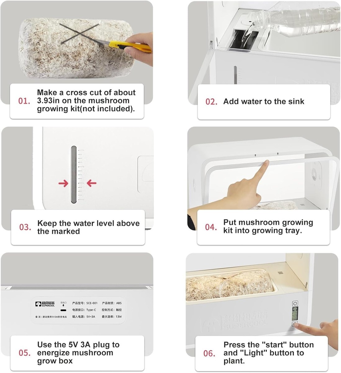 Easily Planting: mushroom grow kit?only a mushroom grow box) features a touch-control design,simply plug it in after unpacking,put water in water tanks and click the start button,then start your planting journey