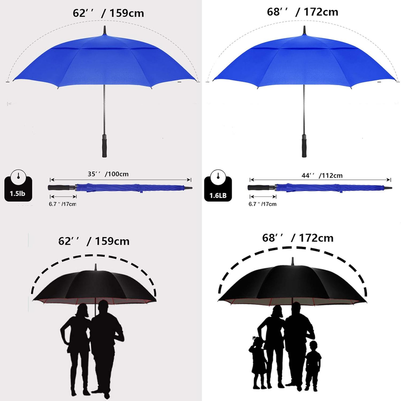 Golf Umbrella Large 62/68/72 Inch, Extra Large Oversize Double Canopy Vented Win