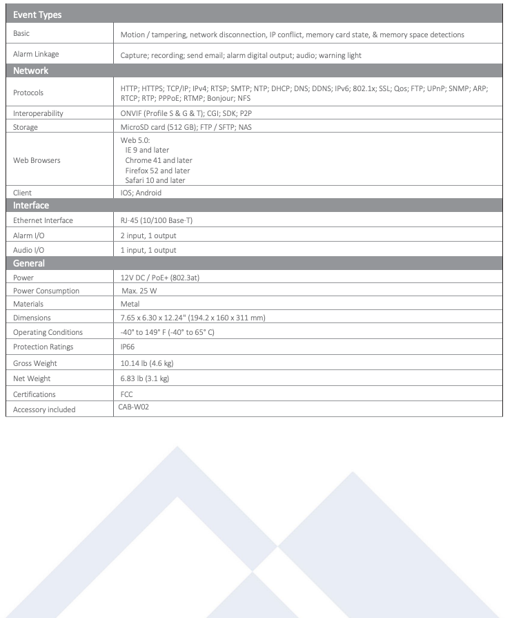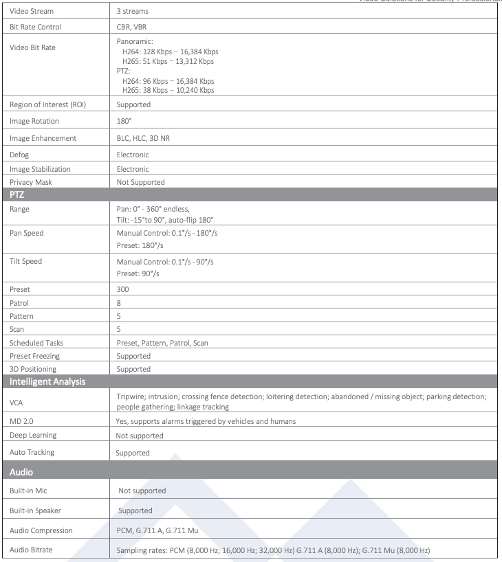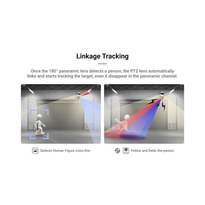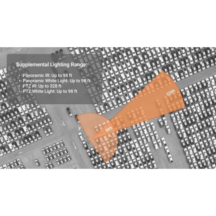 Panoramic Sensor: 180-degree, wide-angle spliced images PTZ Sensor: 1/2.8" 4-Megapixel STARVIS CMOS