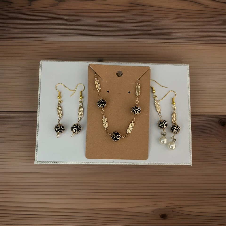 This handmade bracelet and 2 sets of earrings set is a unique and affordable artisan jewelry piece perfect for adding a touch of artistry to any outfit. The set includes a pair of earrings, making it a versatile option for styling with multiple outfits. The artisan brand ensures that each piece is made with quality and attention to detail, making it a standout accessory for anyone looking for a one-of-a-kind jewelry set.