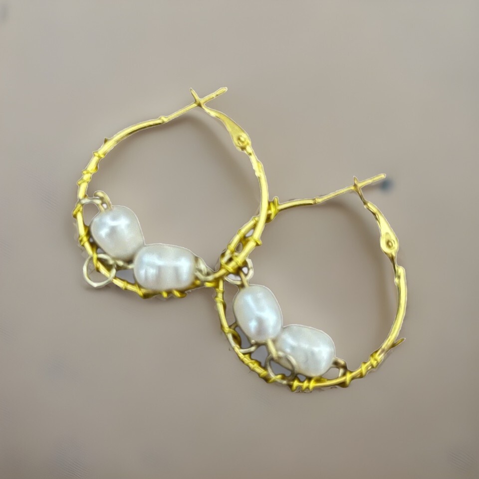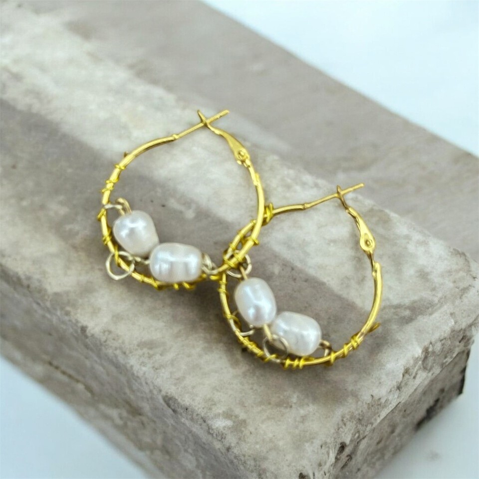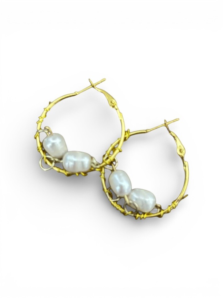 Genuine Pearl Hoop Earrings Wire Wrapped Gold Tone Pearls Under $20 Jewelry
