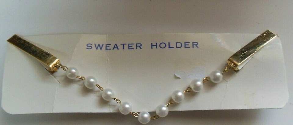 Vintage Gold-tone Faux Pearl Sweater Holder and similar items