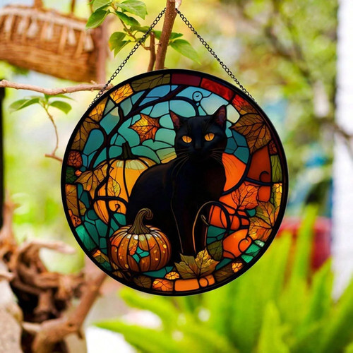 Enamel /Metal Cat/Flowers Sun Catcher