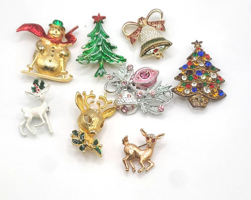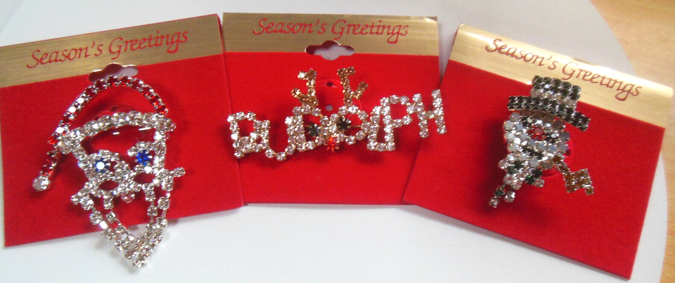 Vintage Christmas Rhinestone Brooch Lot of 3 and 24 similar items