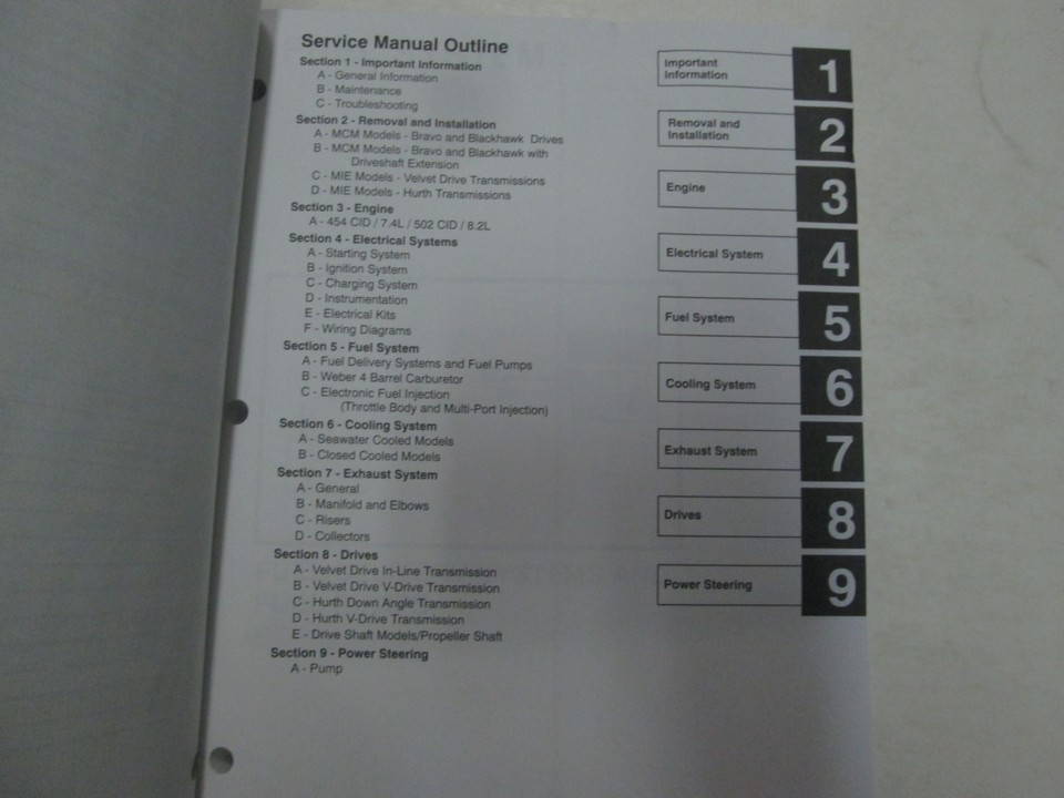 Manuel De Service MerCruiser 10 Moteurs Marins GM 4 Cylindres BINDER ENDOMMAGE