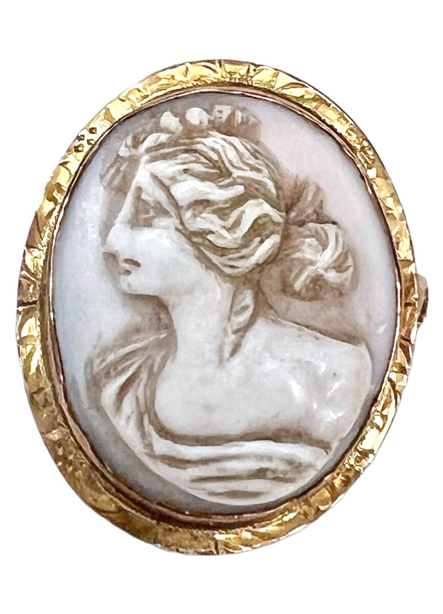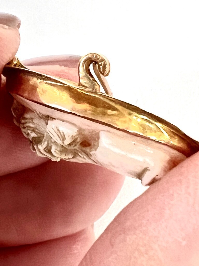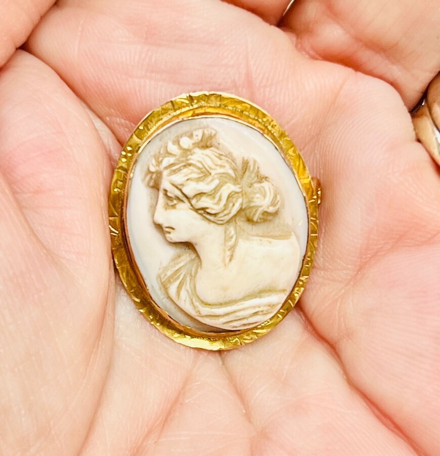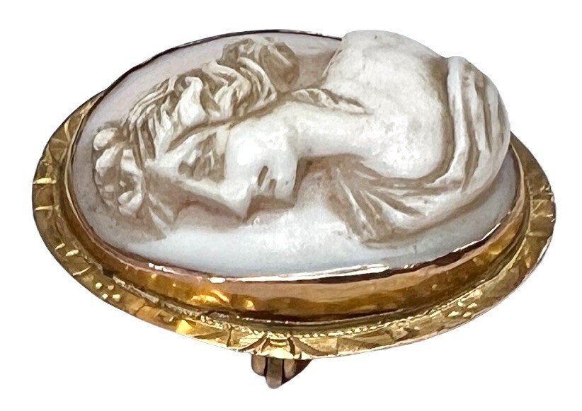 Antique Victorian 10K Gold Framed Lady Head Cameo Pin Pendant
