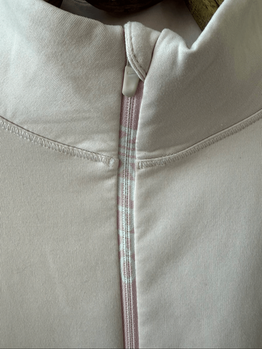 Nike Pro Therma Warm Dri Fit 1/2 Zip pull over. CU4329, colorway 663 which is Pink Foam. White Nike swoosh at the chest and Nike pro printed in white on the pink zipper packet. Laying flat measures 28 inches shoulder to hem and 22 inches armpit to armpits.