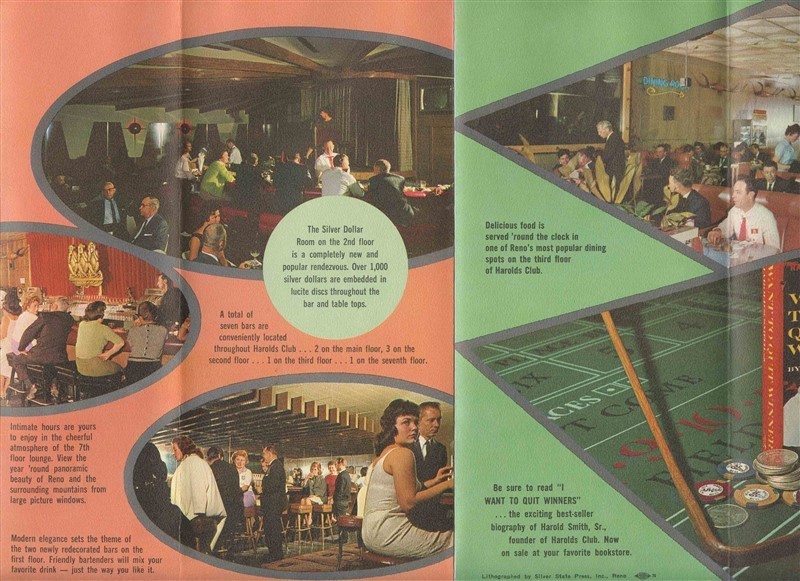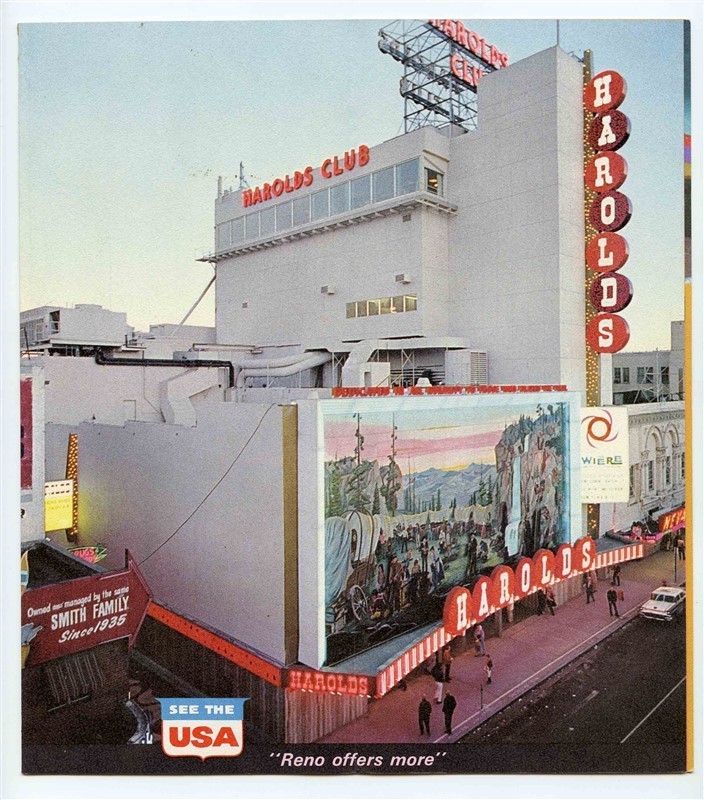 Has picture of Harold's Club , the story of Harold's Club, many pictures of the Gambling and Entertainment, Pictures and information on the sites and activities in and around Reno, and more. Circa 1950's.