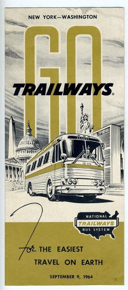 National Trailways Bus System New York Washington Timetable 1964