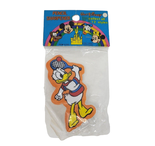 VINTAGE 1970'S WALT DISNEY DONALD DUCK PENCIL SHARPENER NEW IN PACKAGE SEALED