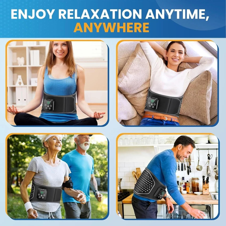 Lower Back Relief Heated Massage Waist Belt simultaneously delivers gentle massage, soothing heat, and vibration massage to help ease and promote relaxation in your lower back