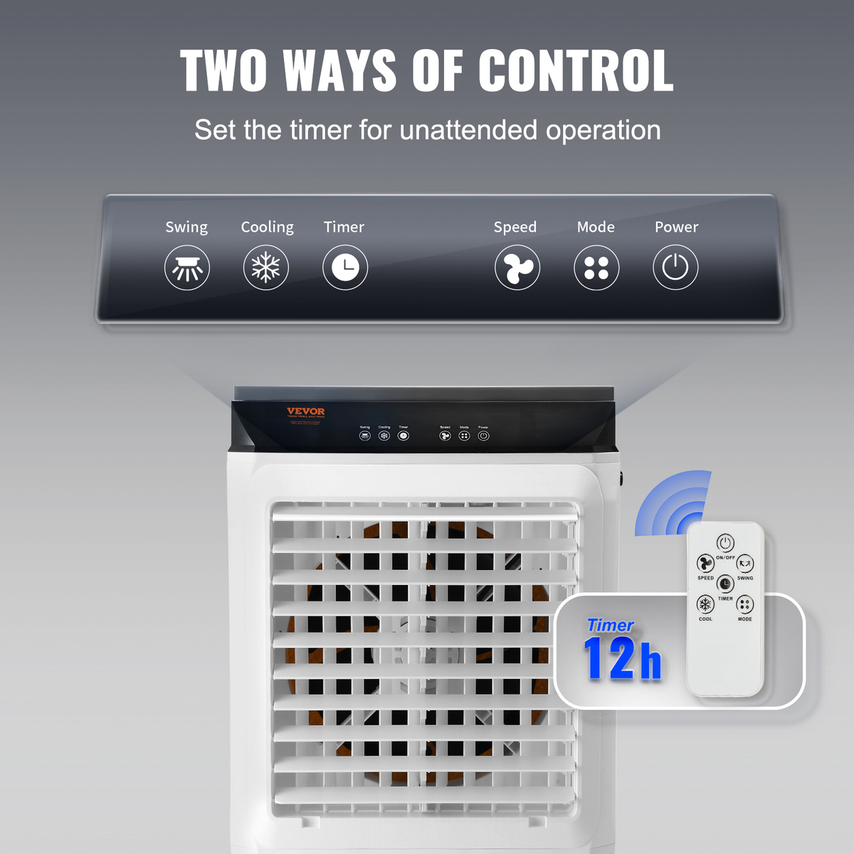 Remote Control Timer: Our portable evaporative cooler has a stylish appearance that will complement your decor. You can easily control the air speed, oscillation, sleep mode, and 12-hour timer function through the touch panel or remote control. With this feature, you won't have to wake up to turn it off after falling asleep.