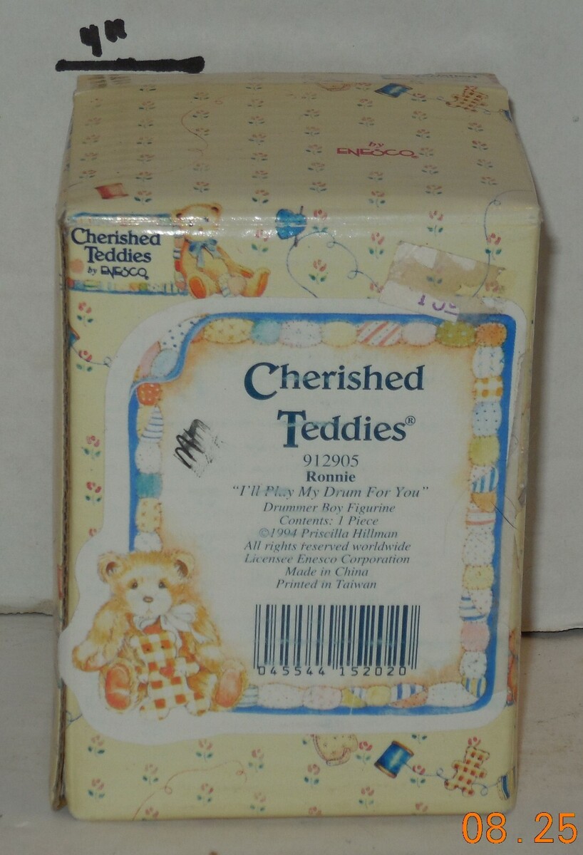 For Sale is a Cherished Teddies Ronnie I'll Play My Drum For Figurine # 912905 1994 By Enesco. it in good condition as seen in the pictures provided what you see is what you will receive. Please ask Any and All Questions prior to purchasing. Fast Same or Next day shipping with Free Delivery Confirmation within the U.S. Payment Due within 7 days of purchase (if you need more time please let us know In advance) we love to combine shipping is always a Yes and Most of the time Additional Items Ship for free.