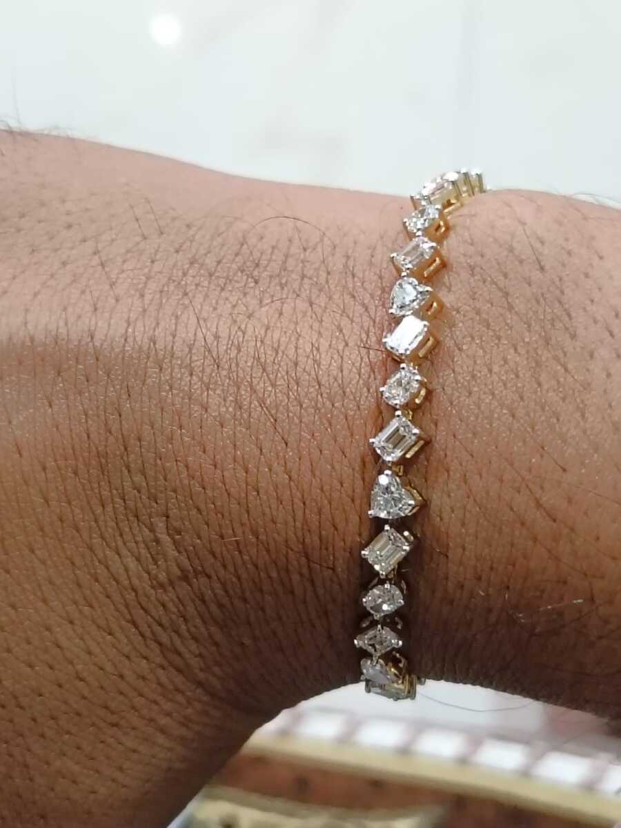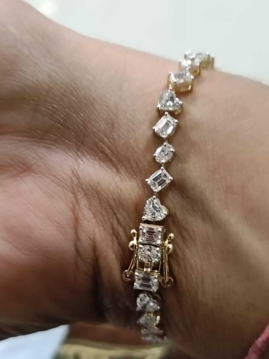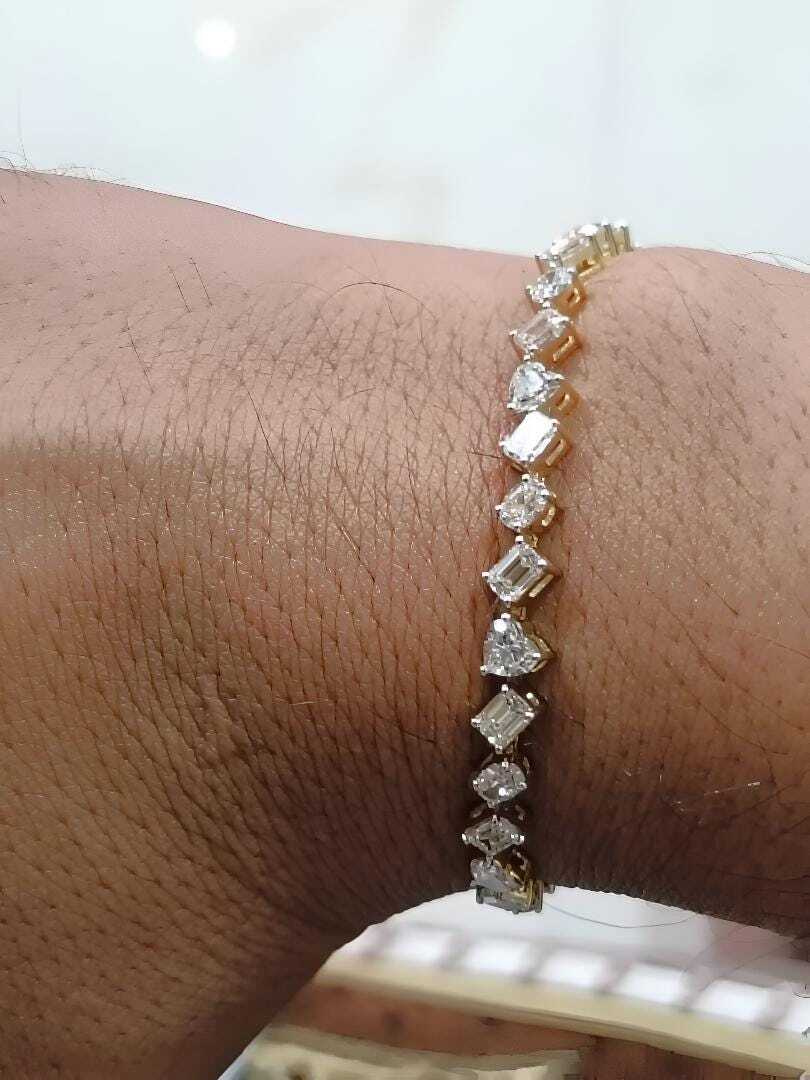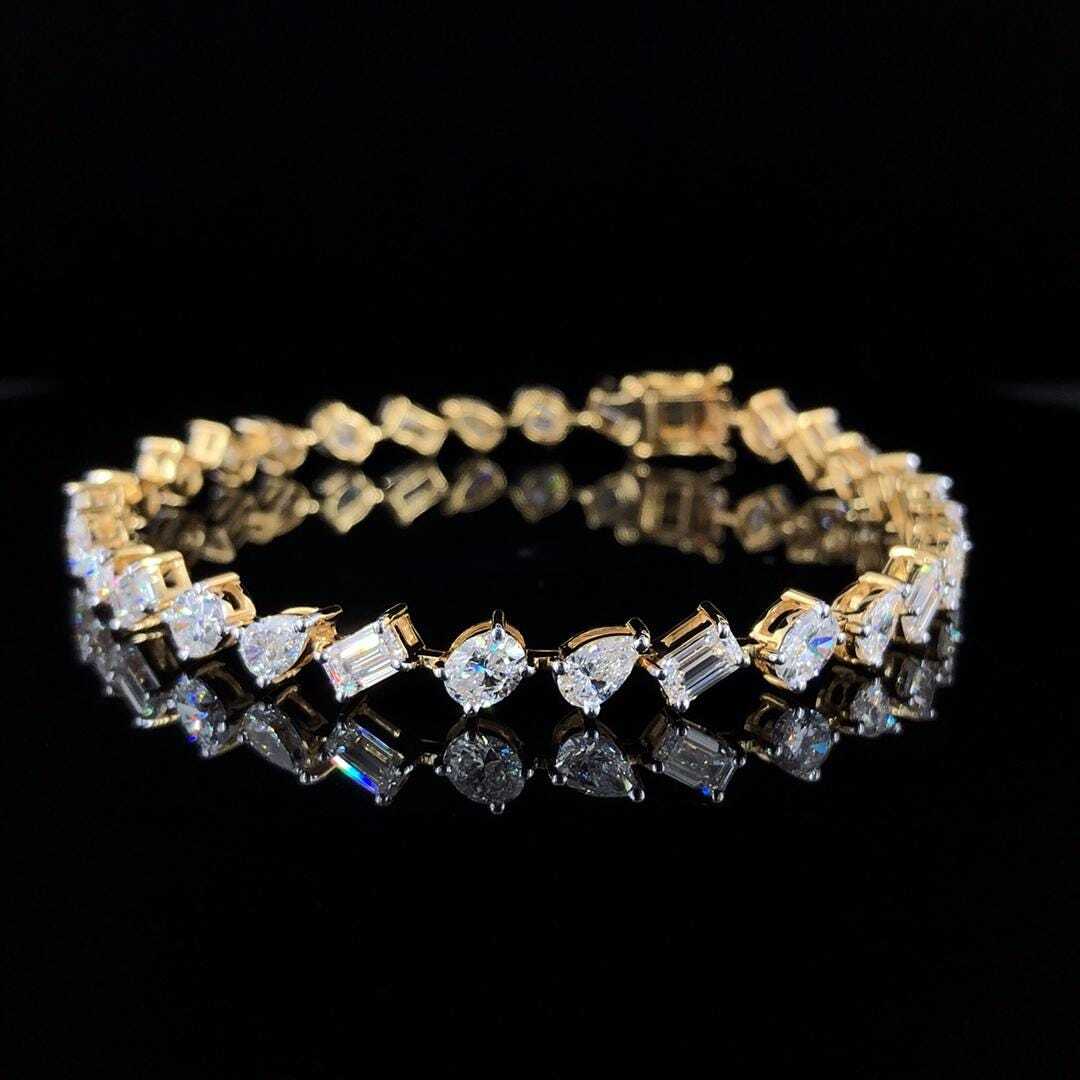 Add timeless elegance to your jewelry collection with this luxurious 14K Yellow Gold Diamond Tennis Bracelet, featuring a stunning mix of Oval, Emerald, and Pear-cut eco-friendly diamonds. Designed for brilliance and comfort, this bracelet is perfect for everyday wear or special occasions.