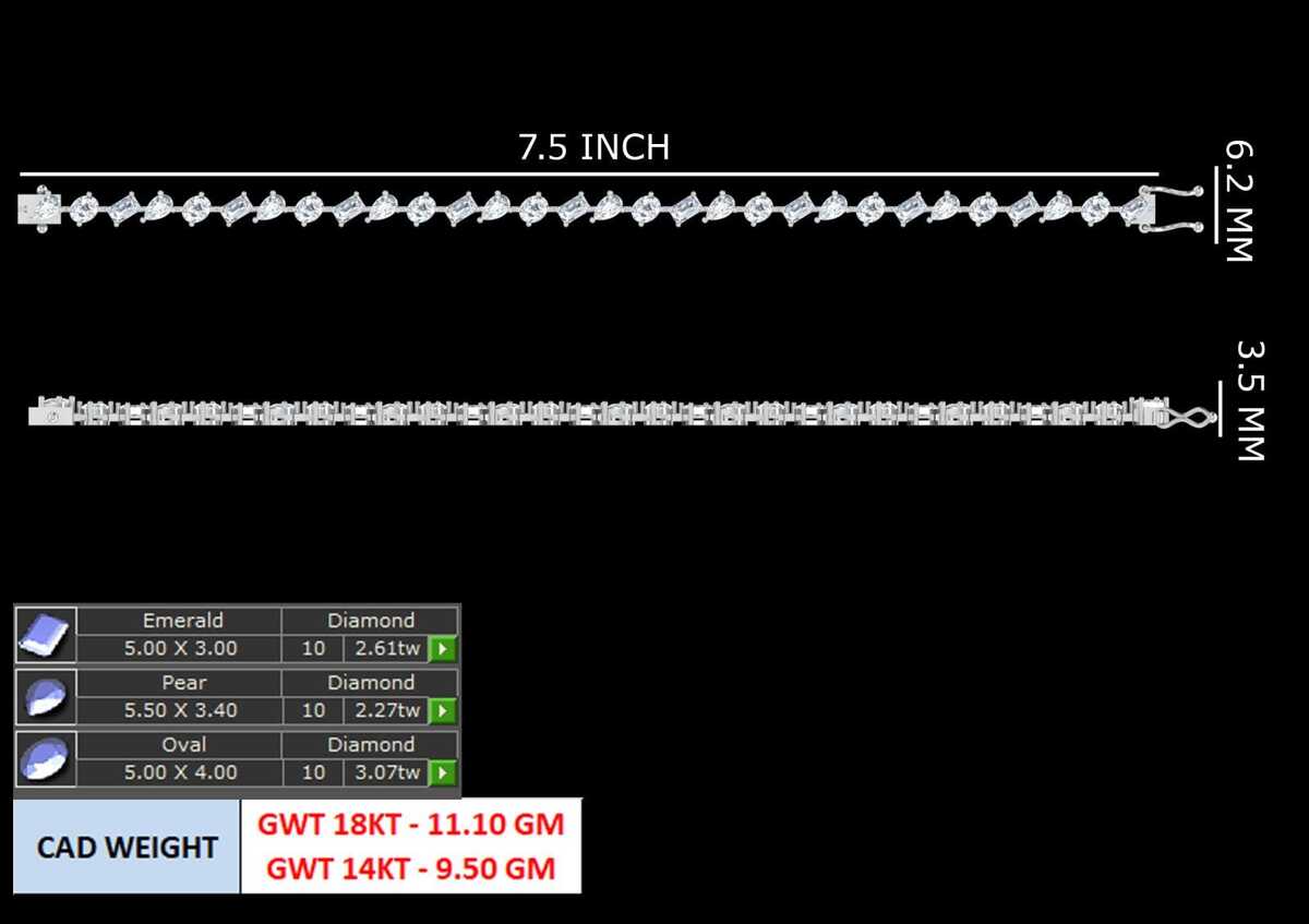 14k Yallow Gold Ovel,Emerald And Pear Cut Eco-Frindly Diamond Chain Tennis Brace