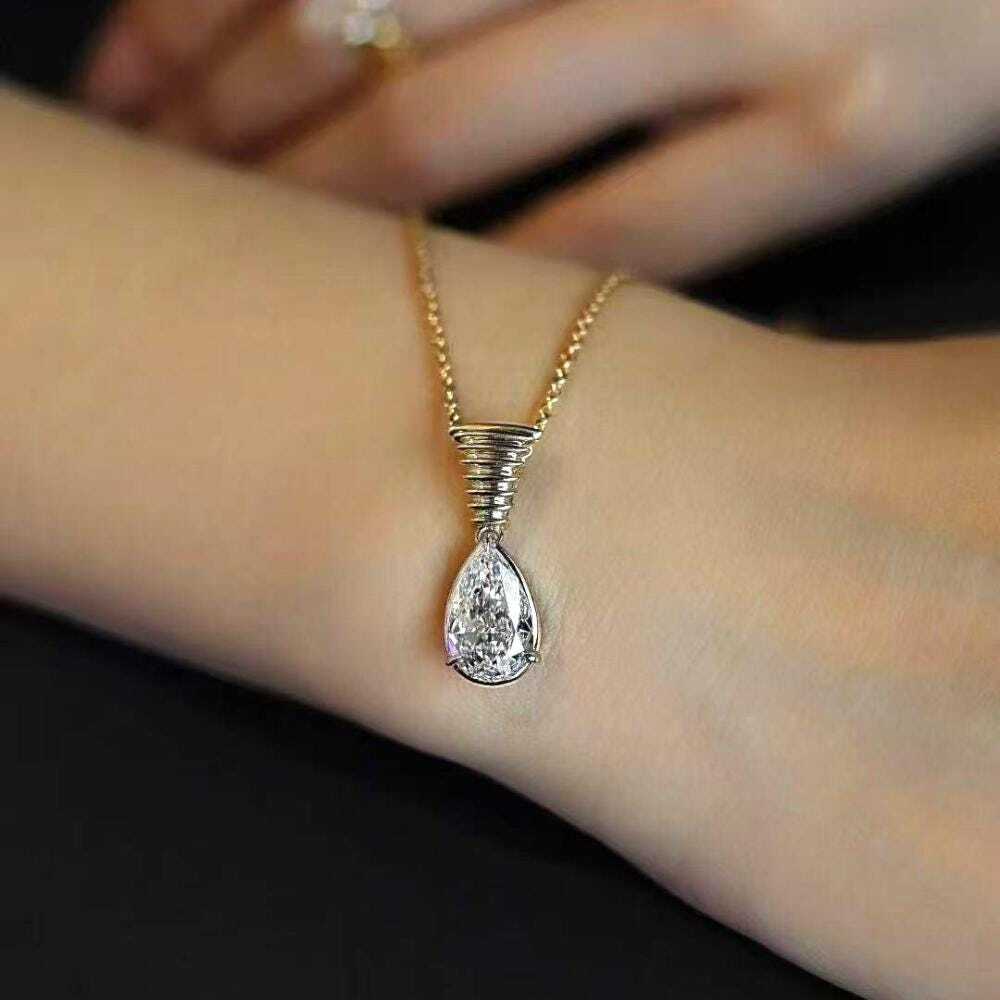 3.00 ct Ct Pear Cut Lab Grown Diamond Necklace: 14K Gold Solitaire Pendant