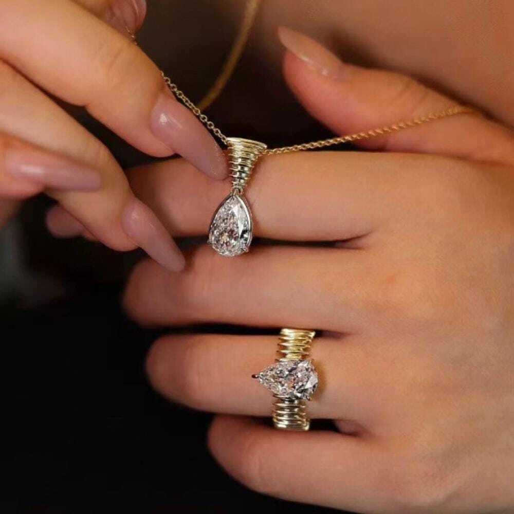 ? Pear Cut Diamond Pendant Necklace in Solid Gold ?