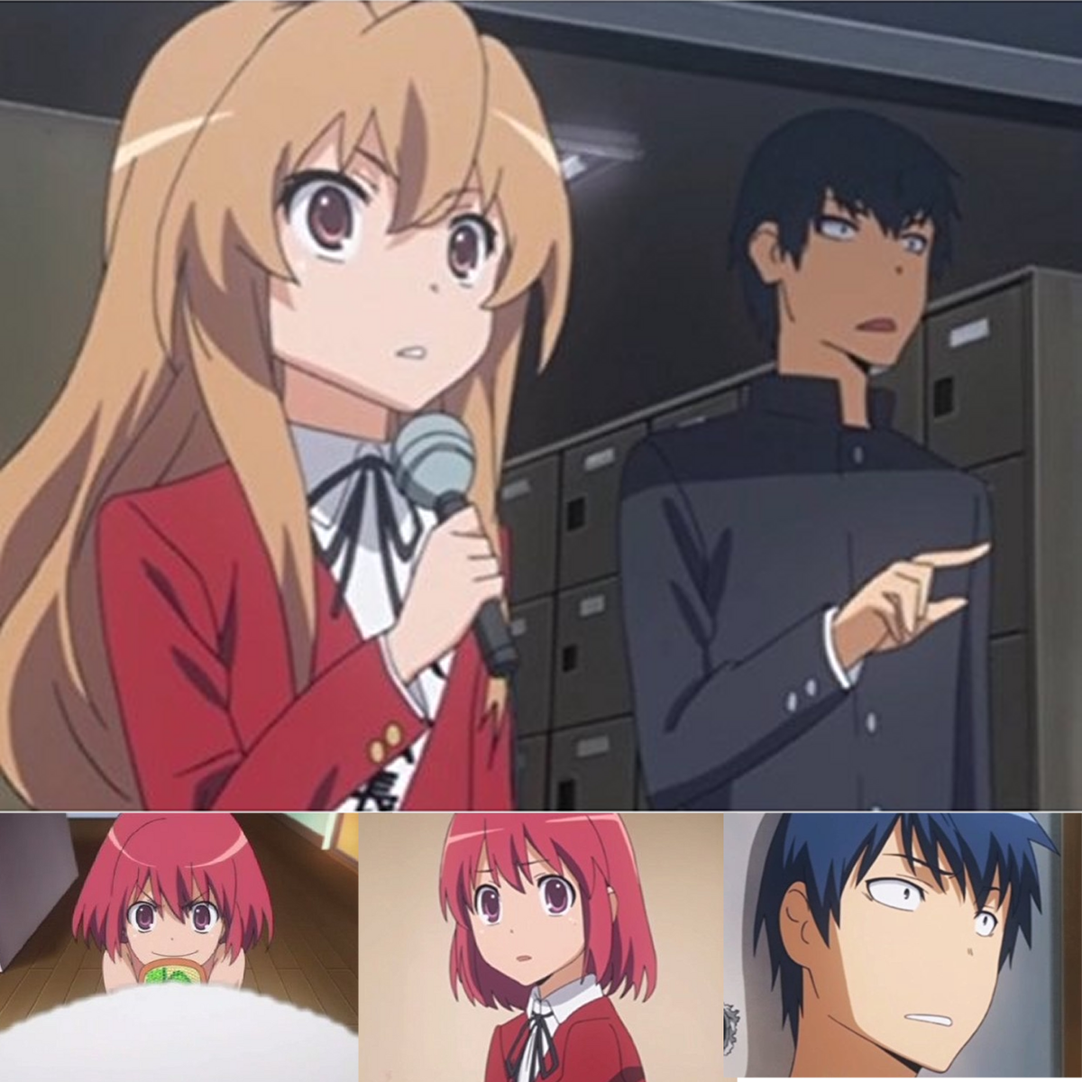 Ryuji Takasu is frustrated at trying to look his best as he enters his second year of high school. Despite his gentle personality, his eyes give him the appearance of an intimidating delinquent. He is happy to be classmates with his best friend Yusaku Kitamura, as well as the girl he has a crush on, Minori Kushieda. However, he unexpectedly runs into "the school's most dangerous animal of the highest risk level"—Taiga Aisaka—who just happens to be Minori's best friend. Taiga has a negative attitude towards others and has a habit of snapping violently at people. She takes an instant dislike to Ryuji, and it turns out she is living in an apartment facing Ryuji's house. When Ryuji discovers that Taiga has a crush on Yusaku, and Taiga finds out about Ryuji's affections towards Minori, they make an arrangement to help set each other up with their crushes.