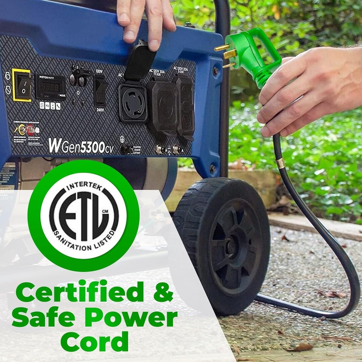 Easy Handling: The right-angle male TT-30 plug comes with a convenient handle, making it easy to pull and push. No more struggling with awkward angles when connecting your RV to the power source. Plus, the twist-lock female L5-30 receptacle ensures a secure connection.