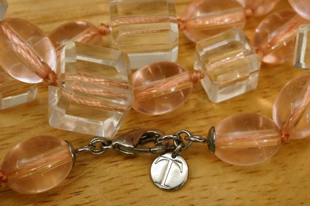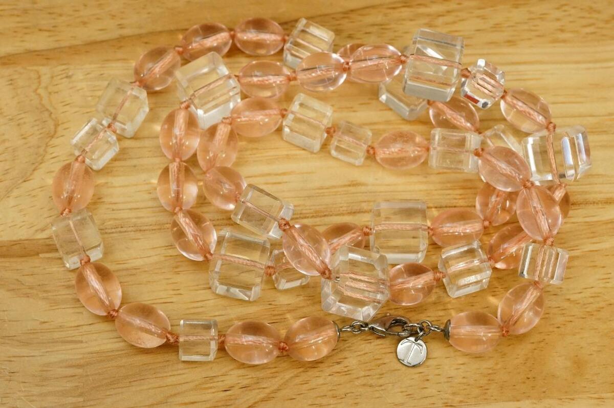 Costume Jewelry TALBOTS Ice Cube Clear Pink Crystal Acrylic Beaded Necklace