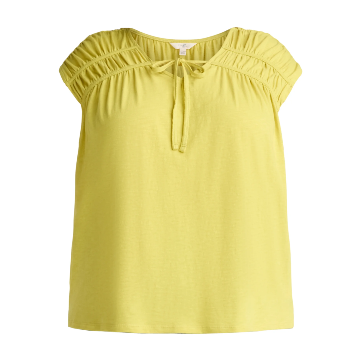Terra & Sky Womens Plus 3X 24W 26W Shirred Tie Top Iced Pear Green Cotton Shirt
